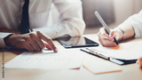 Business team working together at meeting of design ideas. Concept of modern business. Vintage tone.
