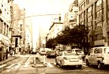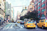 Traffic on Manhattan's avenue ( Ladies' Mile Historic District) in the day-time, New York City, United States. Toned image.