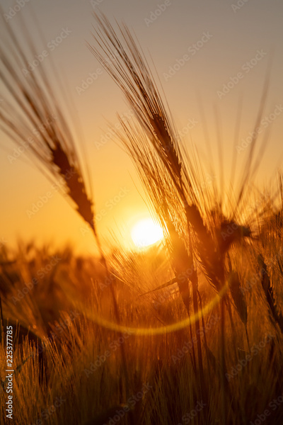 Ears of Wheat or Barley at Golden Sunset or Sunrise