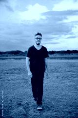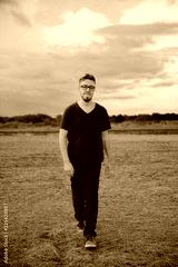 Handsome Young Male Model in Glasses and V-neck Modeling in Open Field Background