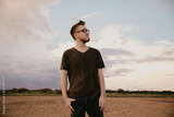 Handsome Young Male Model in Glasses and V-neck Modeling in Open Field Background