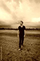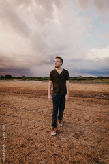 Handsome Young Male Model in Glasses and V-neck Modeling in Open Field Background