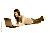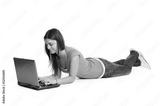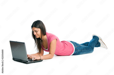 Young woman working and surfing on laptop