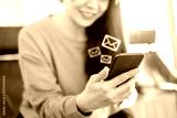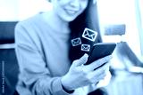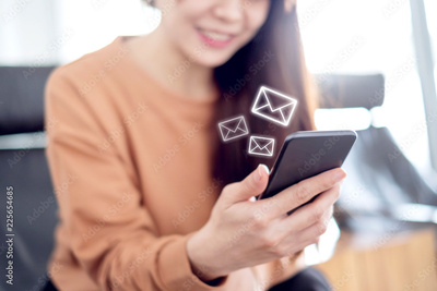Closeup Woman hand using mobile smartphone with email icon, Email concept.