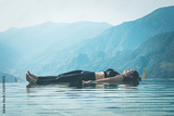 Beautiful Attractive Asian woman practice yoga Dead Body or Savasana on the pool above the Mountain peak in the morning in front of beautiful nature views in SAPA vietnam,Feel so comfortable
