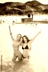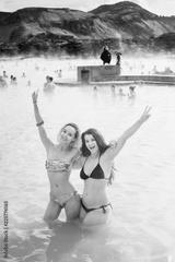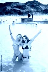 Blue Lagoon beautifull sexy girl with swimsuit bikini near Reykjavik in Iceland. Famous Icelandic Arctic Thermal Spa. Sightseeing