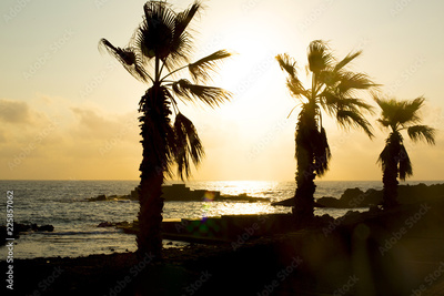 palm trees backlight on the beach