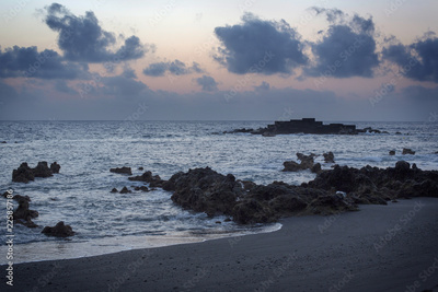 sunrise on a rocky beach