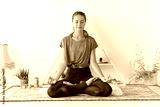 mindfulness, spirituality and healthy lifestyle concept - woman meditating in lotus pose at yoga studio