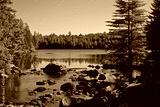 Adirondack Park, New York, USA: A view of Sagamore Lake through a gap in the trees.