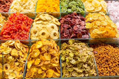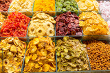 Various dried fruits on the Grand Bazaar in Istanbul, Turkey