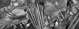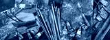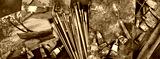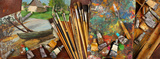 Panorama with sketches and tools of the working artist