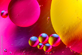 Abstract background with colorful gradient colors. Oil drops in water abstract psychedelic pattern image. Purple orange yellow colored abstract pattern with water bubbles