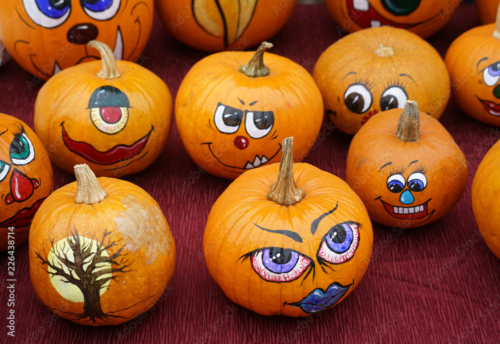 group of painted pumpkin for Halloween in autumn