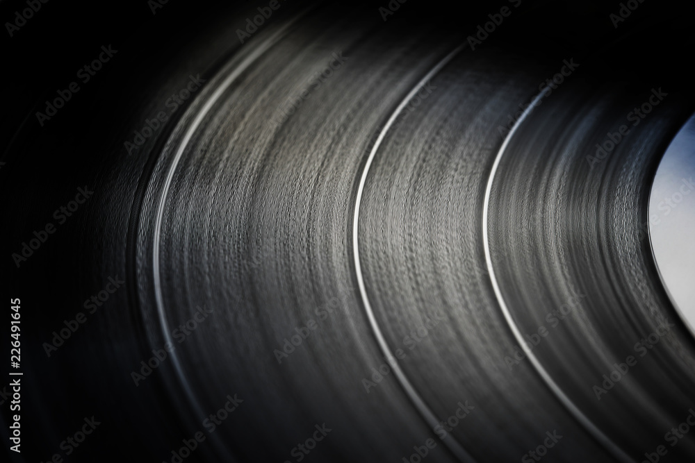 Surface of an old vinyl record. Macro shot, shallow depth of field.