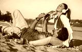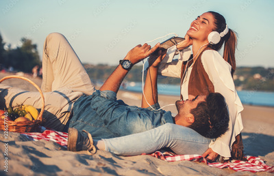 Beautiful young couple having fun on the beach. Lifestyle, love, dating, vacation concept