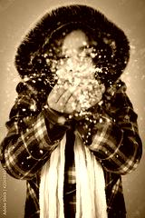Winter Girl Blowing Snow from Hands, Isolated in Studio