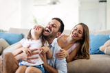 Happy family having fun time at home