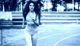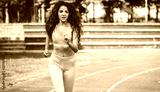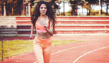 Jogging. Young girl running on stadium track. Sport, fitness, recreation concept