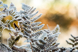 frozen autumn fern leaves in ice crystals. Autumn nature