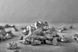 Gold nuggets on grey table