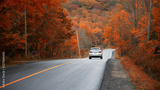 Driving on the highway and chasing the gold colours of Fall, Muskoka, Ontario, Canada.