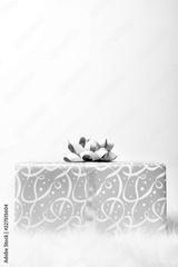 Elegant Christmas Gift on Snowy Background, Room for Text