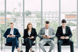 Group of business people sitting chair and using their mobile phones, ignoring work and social networking.