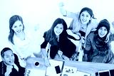 Group of young Asian business colleagues in team casual discussion, startup project business meeting or happy teamwork brainstorm concept.