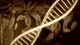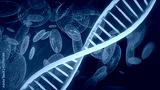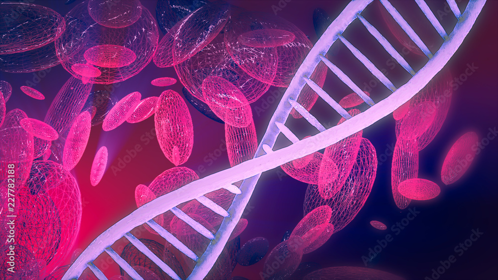 Abstract 3d rendering of DNA blood cell on scientific background.3d illustration.