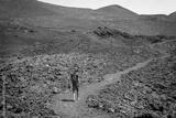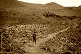 man walked between volcanoes