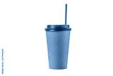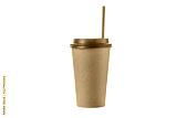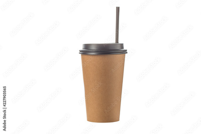 Take out coffee in brown thermo cup with black drinking straw isolated on a white background.