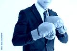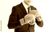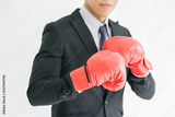 A tough guy businessman is wearing boxing gloves. Abstract concept for competition, sales, marketing, job, or a business career.Close up.businessman in Boxing gloves.concept of competitiveness.