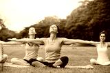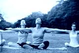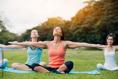Woman doing yoga on the park - beautiful lights.relax in nature on the park .
