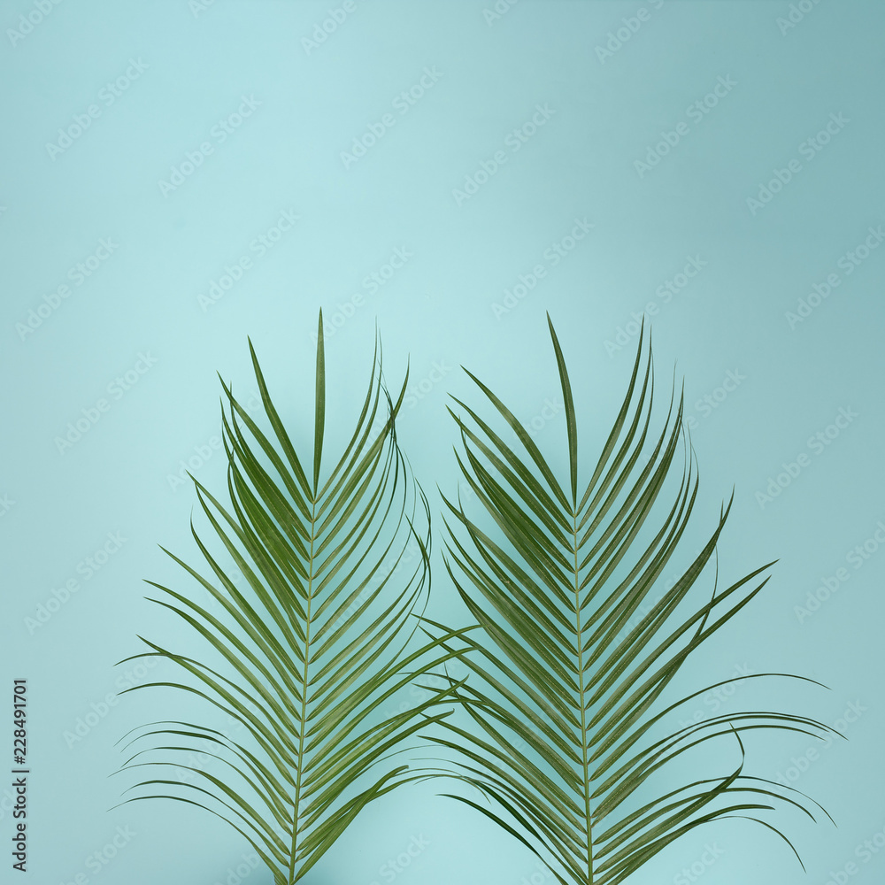 Creative layout made of colorful tropical leaves on white background. Minimal summer composition. Exotic concept with copy space. Border arrangement.