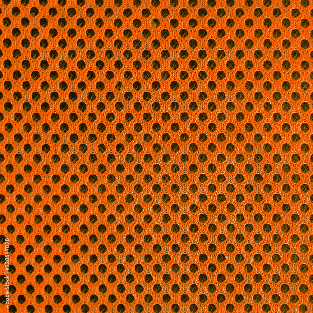 orange breathable porous poriferous material for air ventilation with holes. Sportswear material nylon texture. Square