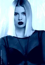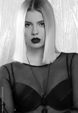 attractive young woman middle length hairstyle blond trendy haircut close up portrait