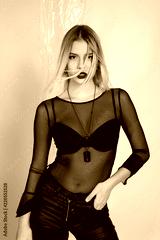 attractive young woman middle length hairstyle blond trendy haircut close up portrait