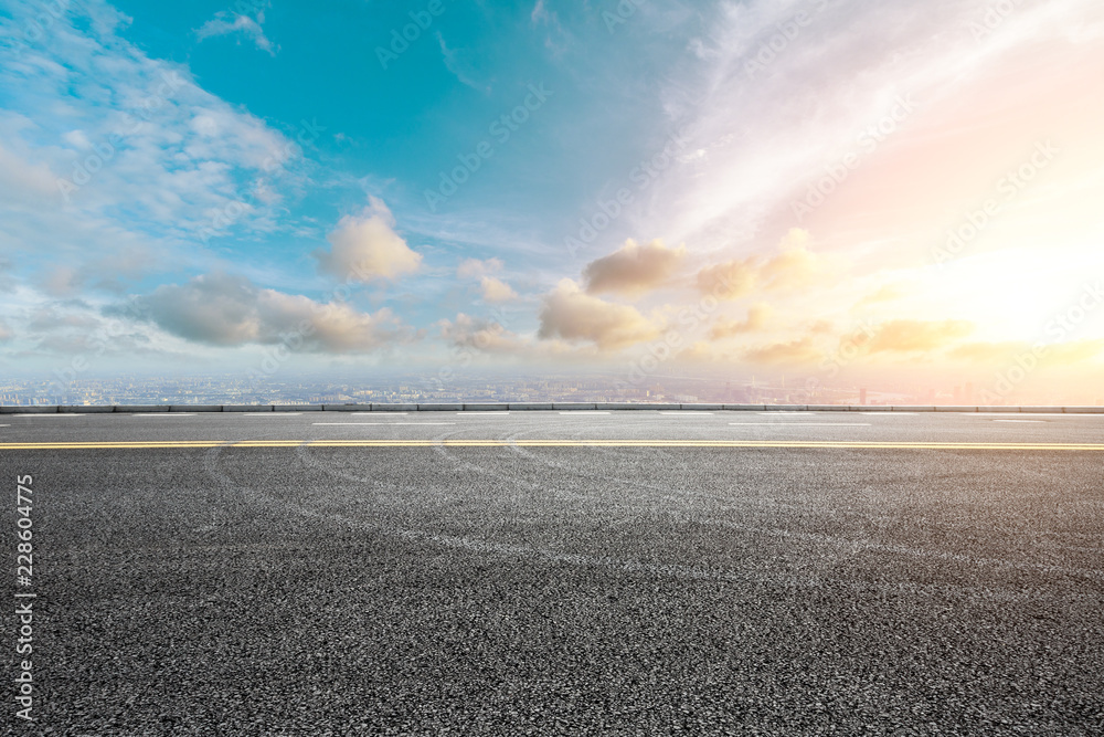 Panoramic skyline and buildings with empty road
