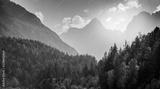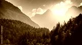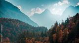 Beautiful mountain landscape with autumn forest. Alpine scenery - Julian Alps