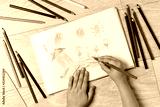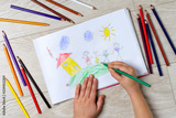 The child draws his family on a piece of paper with colored pencils. What can a children's picture tell. The concept of child psychology.