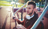 Sportsman doing exercises outdoors. Sport, fitness, street workout concept