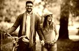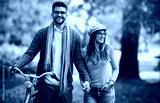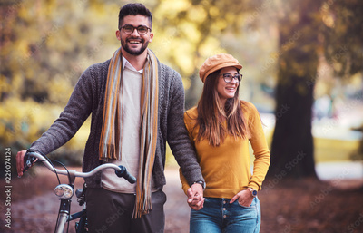 Meeting in the park. Romantic couple in the autumn park. Love, dating, romance