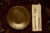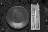 Christmas New Year food concept frame on the dark wooden table. Holiday top view. Copy space