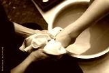 Foot washing in spa before treatment