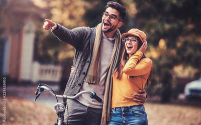 Meeting in the park. Romantic couple in the autumn park. Love, dating, romance
