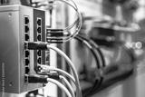 Electrical Circuits. The electric wire behind the control board with lighting effect,Industrial Electrical Concept. Wiring PLC Control panel with wires industrial factory