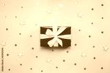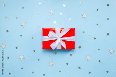 Gift box with white bow on blue background