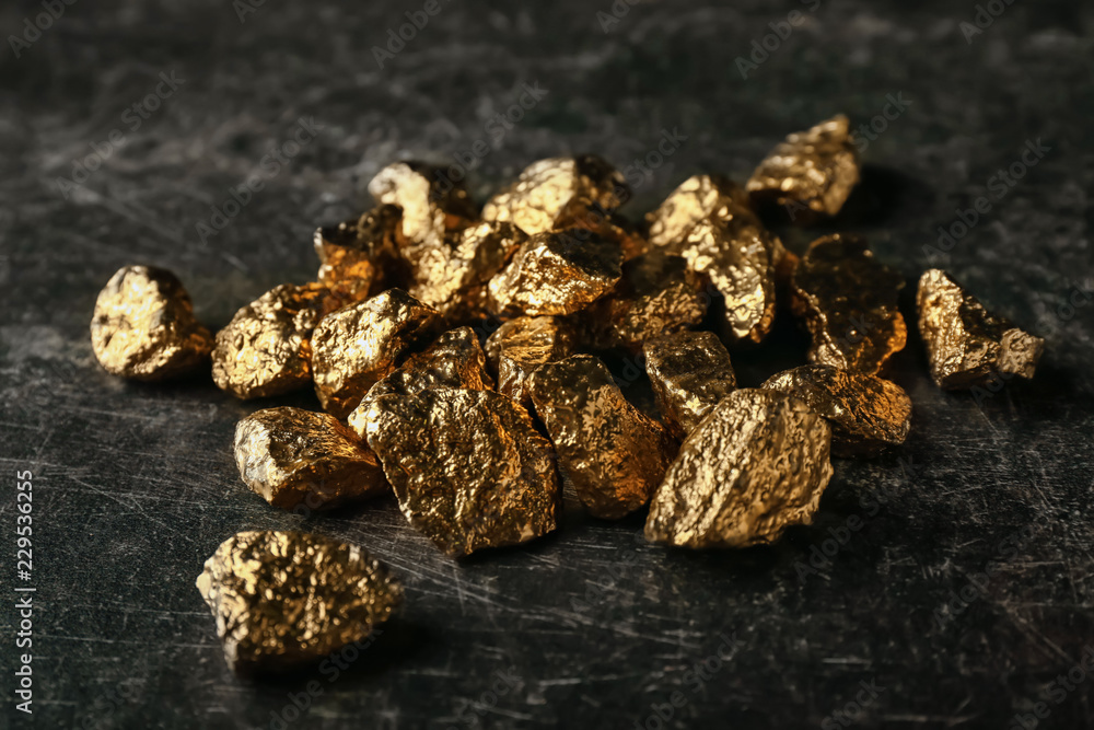 Gold nuggets on black background