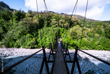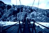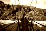 The wooden swing bridge in the green nature.